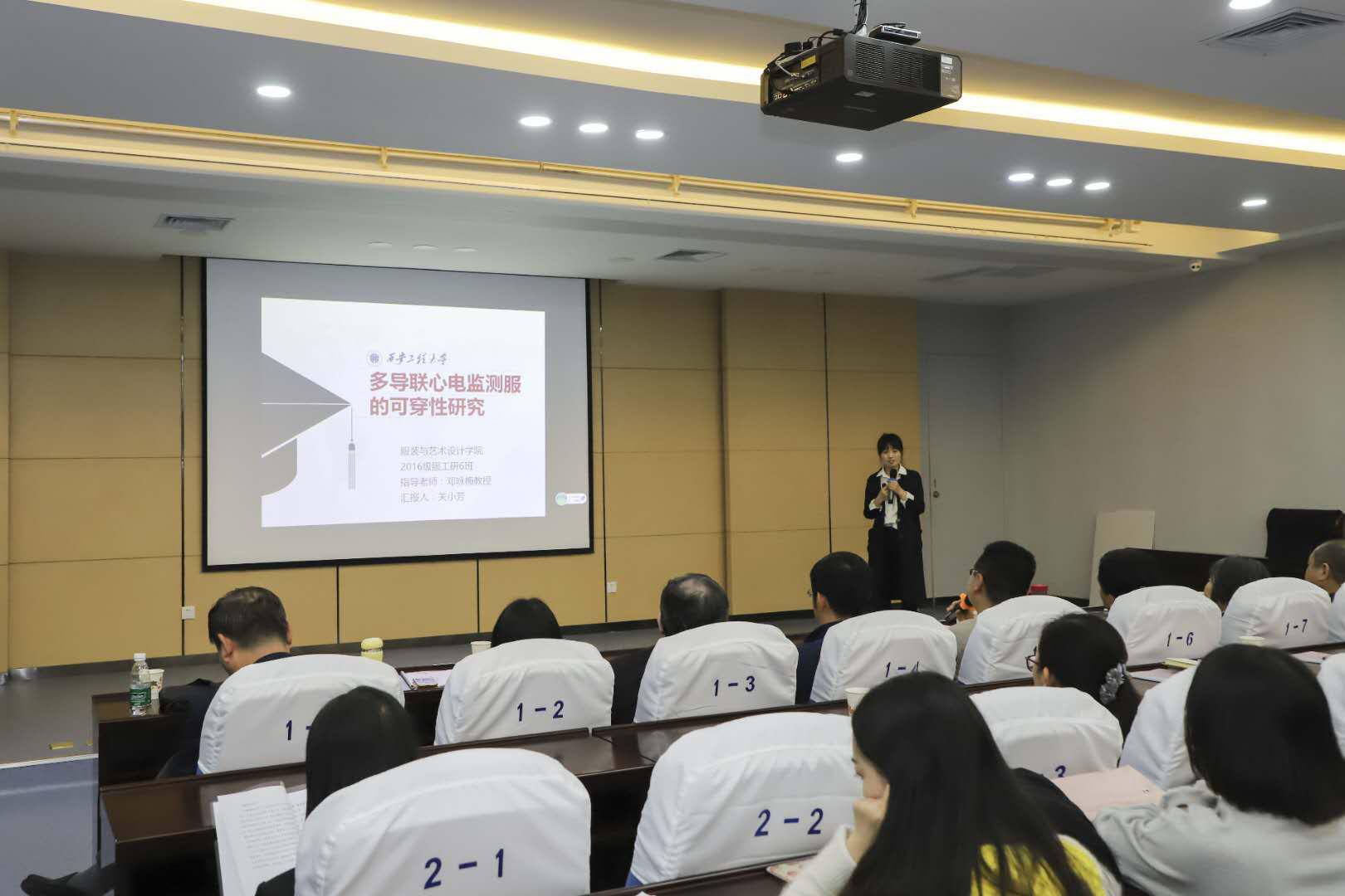 服装学院2016级研究生关小芳以《多导联心电监测服的可穿性》为题作学术报告