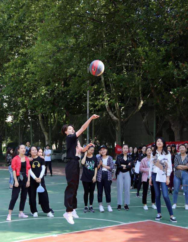比赛进程中,各位队员都全力以赴,用心防守、有力阻挡,越战越勇,显示了他们极佳的心理素质。在场同学也情绪高涨、时不时为队员打气、喝彩,气氛热烈。赛场上的队员拼抢激烈,带球、运球、投篮等一系列动作潇洒、规范,引来围观同学一阵阵地喝彩。在男生比赛半场后,女球员开始了有趣的投球比赛,真是巾帼不让须眉,女球员也个个身手敏捷,引来在场同学的频频掌声。