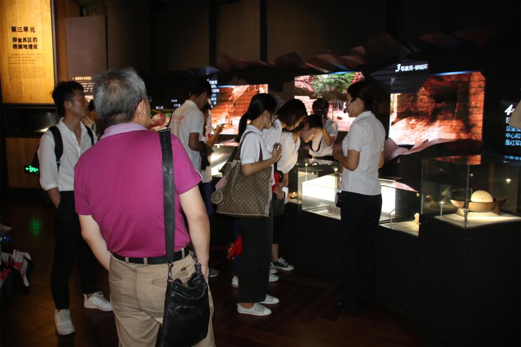 听讲解员解说参观博物馆