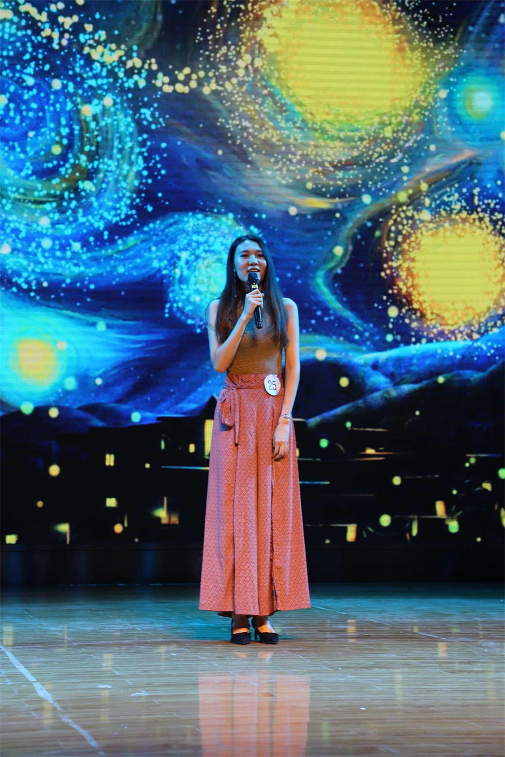 决赛分为“生活装”“个人才艺”“服饰搭配”“晚礼服”四个环节。各位选手轮流上台,向评委和观众自信地展现自己完美的形体、专业的台步、流利的表达、得体的服装,不遗余力地通过舞台表现向评委与现场观众展示自己的朝气与活力、美丽与优雅。展示环节过后由服装学院学生会文艺部献上歌曲《shape of you》与拉丁舞表演。