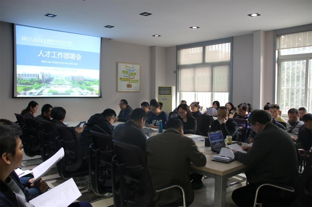 2017年10月18日下午,米兰milan在金花校区三楼会议室召开人才工作部署会。米兰milan党政领导班子全体成员、学院办公室主任、学生工作办公室主任、各系部正副主任、实验中心负责人、部分教授、副教授、博士(在读博士)以及学科秘书、科研秘书、教学秘书、研究生秘书等共40余人参加会议。会议由戴鸿院长主持。