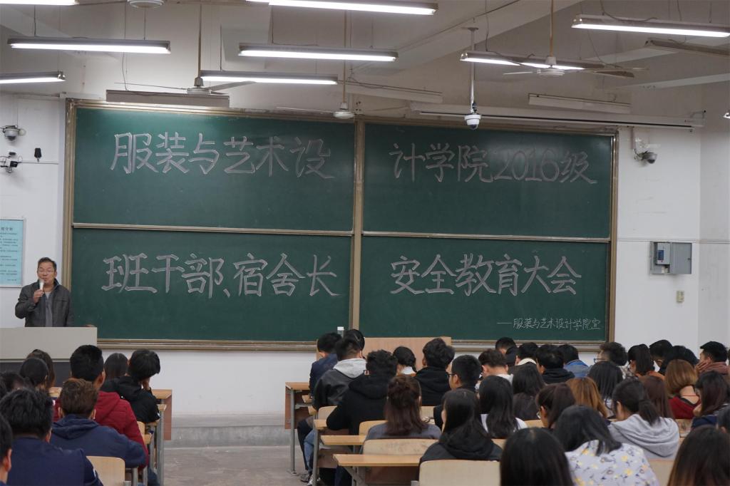 为落实我校安全管理条例,加强安全教育知识的宣传,使每一位同学认识到安全的重要性,米兰milan于2017年10月17日中午,在临潼校区B座教学楼137教室举行2016级班干部、宿舍长安全教育大会。服装学院党委书记李筱胜,党委副书记胡小进,学生工作办公室主任张峰,团总支书记马薏雯,辅导员黄博宇、邵巍、邢烜毓、王丽丽,2016级各班班委和宿舍长参加了本次安全教育大会。胡小进主持本次会议。