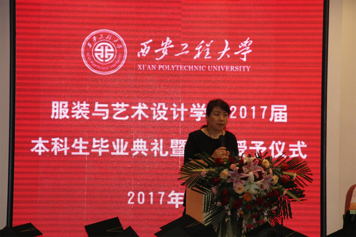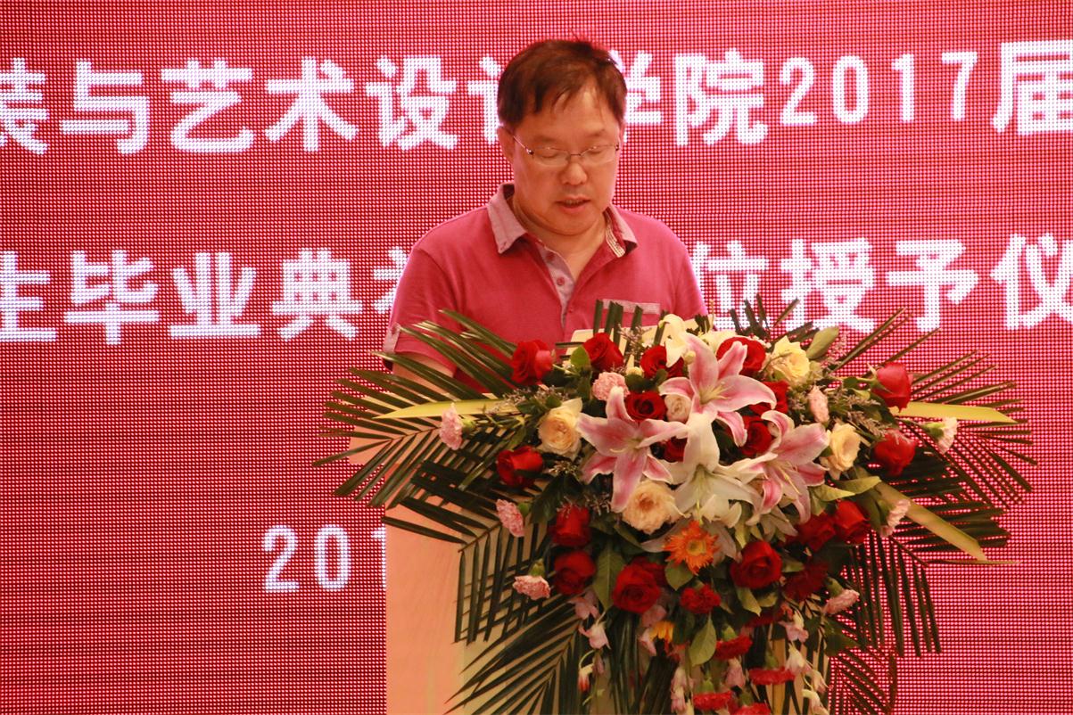 随后,教师代表服装设计系主任袁燕副教授、产品设计系主任王教庆副教授、环境艺术系主任韩永红副教授分别发表。代表全体教师向如期毕业的2013级毕业生表示祝贺,鼓励同学们今后在工作岗位上继续努力,再创佳绩。