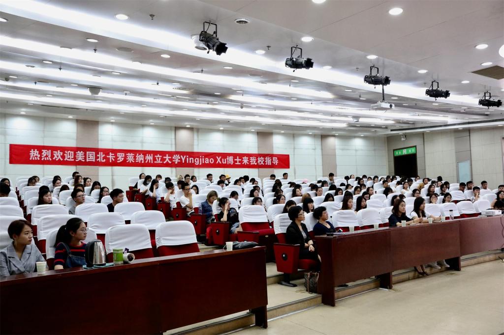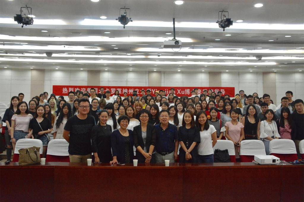 讲座上,徐英娇教授首先对美国北卡罗莱纳州大学做了简要介绍,随后为同学们讲解了品牌与消费者之间的关系,新技术在品牌推广中的应用,抛出了一些发人深省的问题。接下来,结合中美两国的服装消费市场特点,徐英娇教授介绍了美国服装市场的最新发展趋势,提出服装零售商应该具有“前瞻性”脱颖而出的观点。她还提出了一些服装领域的新概念,指出订购服务在服装行业中的应用(Subscription Services In The Fashion Industry)最为关键。她强调,今后的服装营销应充分满足消费者个性化、人性化、体验化需求,才能更好地服务消费者。在互动交流环节中,同学们踊跃提问,徐英娇教授均一一耐心解答,并对同学们认真思考后的提问表示肯定。最后,在大家的掌声中本次报告会圆满结束。徐英娇教授与在场师生合影留念。