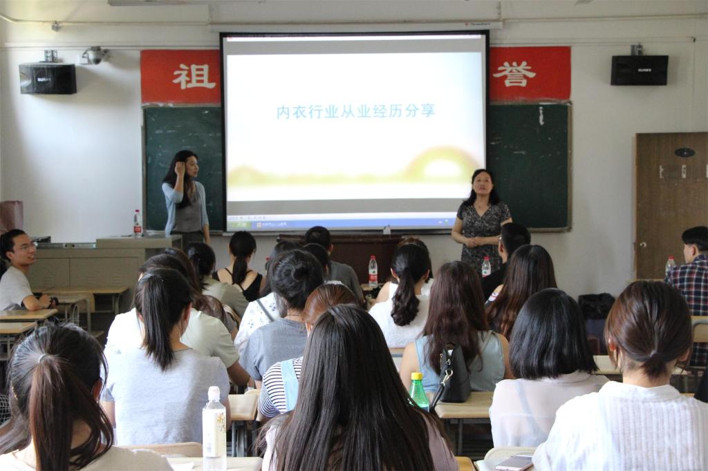 在报告会上,王玉首先分享了自己对内衣行业从业的看法,阐述了内衣企业对内衣专业学业学生的要求,在黑板上给同学们列举了很多的案例,与同学们就内衣行业从业设计与销售,市场推广等问题展开了深层次的讨论,让同学们收益匪浅。