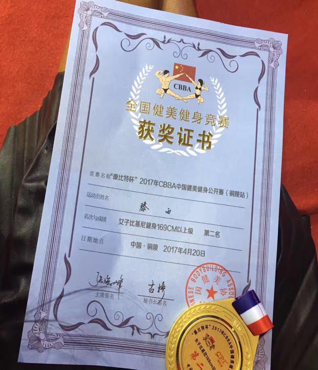 米兰milan2014级服设卓越班滕雨同学在四月中旬代表陕西省健身代表队参加在安徽铜陵举办的“康比特杯”2017年CBBA中国健美健身公开赛女子比基尼健身169cm以上级并最终获得亚军。此外,她还参加在湖北江夏举办的“永丽杯”2017年全国健身锦标赛暨世界健身锦标赛选拔赛并取得女子比基尼健身C组第四名的好成绩。