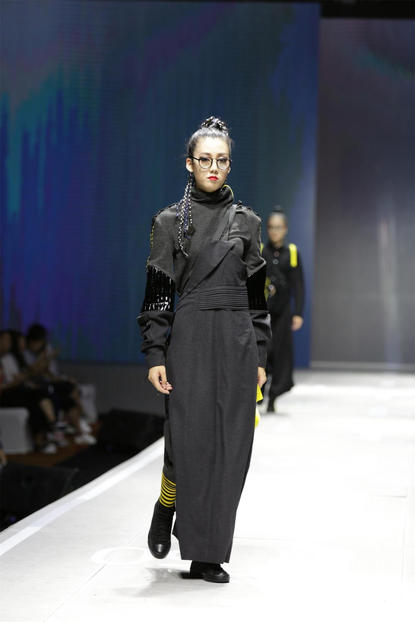随后,进入到了比赛环节。参与本次服装设计大赛的服装设计毕业作品是从服装设计系与服装表演系近200多个系列中精选出来的30个系列近160余套优秀的毕业设计作品。本次毕业设计的主题为“奇幻之旅(Fantastic Trip)”。教学定位是从传统与现代、民俗文化与多元文化的碰撞中寻找设计灵感,考查毕业生驾驭多种元素进行综合设计的能力。本次服装毕业设计大赛作品的特色主要体现为将大西北的粗犷稚拙,与民间手作的华丽精美,以及充满时尚趣味的流行文化相结合,呈现出多种风格杂糅、多元文化碰撞、奇特梦幻的整体风貌,为观者带来了穿越时光隧道般的“奇幻之旅”。