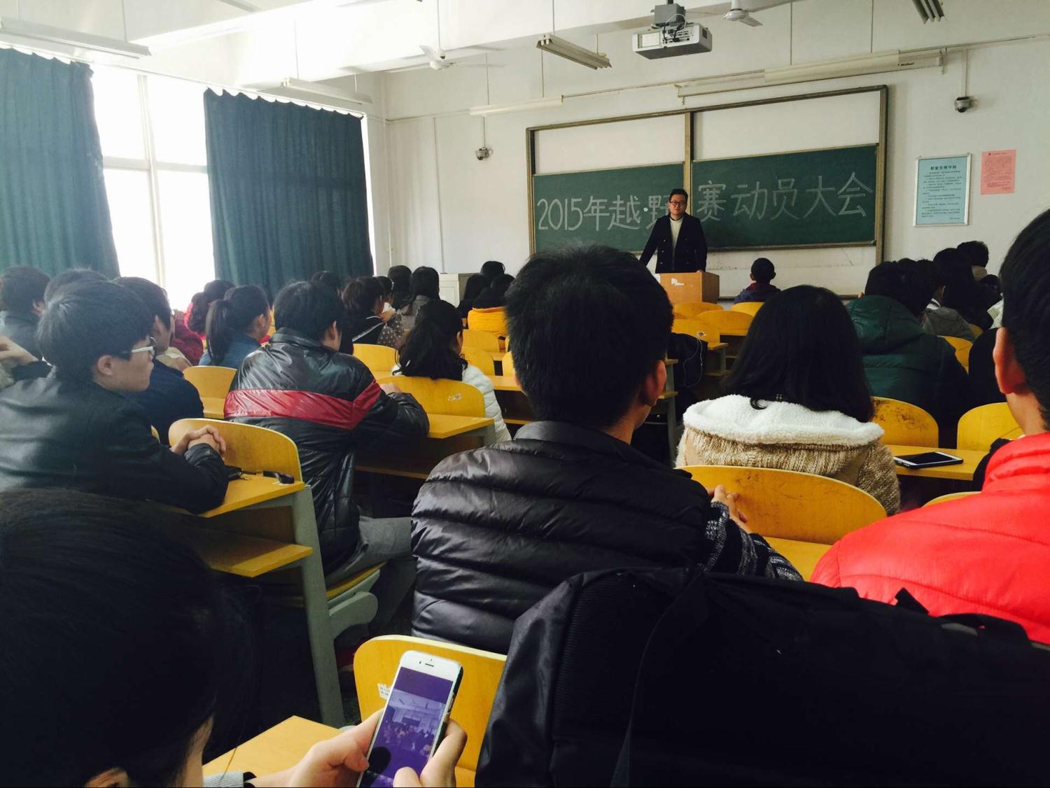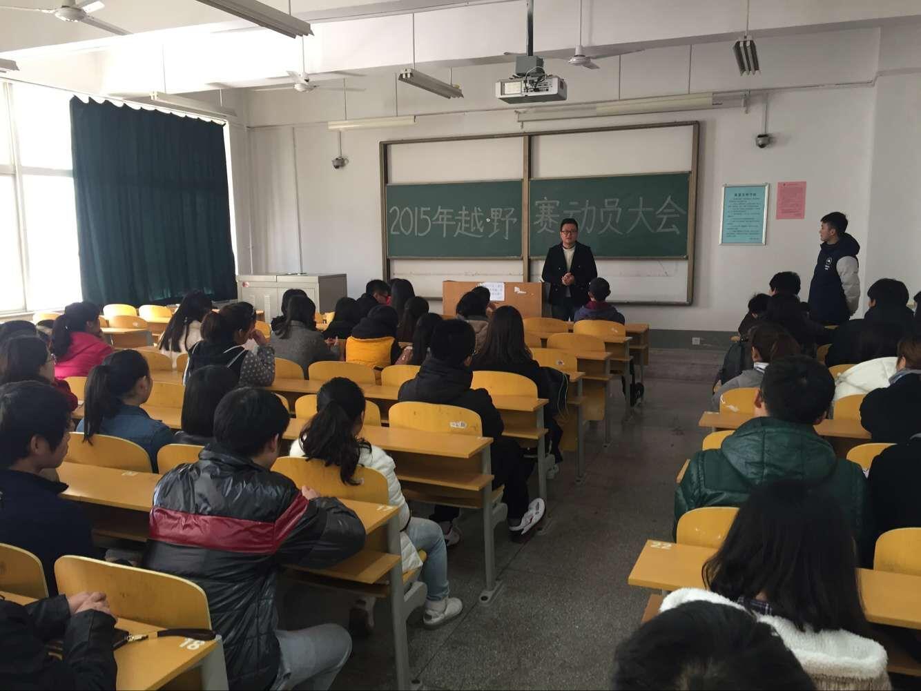 在校越野赛将到来之际,为充分调动运动员的积极性,同时保障运动会期间各项服务工作有序进行,2015年11月25日12:20于D-1102召开服装学院越野赛运动员动员大会。我院辅导员蔺晓珣老师、黄博宇老师、翁思洁老师、学生会体育育部所有成员及全体参赛运动员参与了本次动员大会。