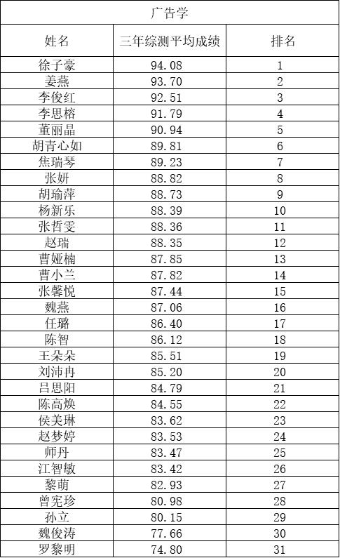 根据《关于做好我校2023年推荐优秀应届本科毕业生免试攻读硕士学位研究生工作的通知》,现将2019级本科生三年综合素质测评平均成绩公示如下,公示时间为2022年9月9日18点至2022年9月13日18点,如有异议请于公示期内向辅导员办公室或直接与毕业生辅导员反馈。