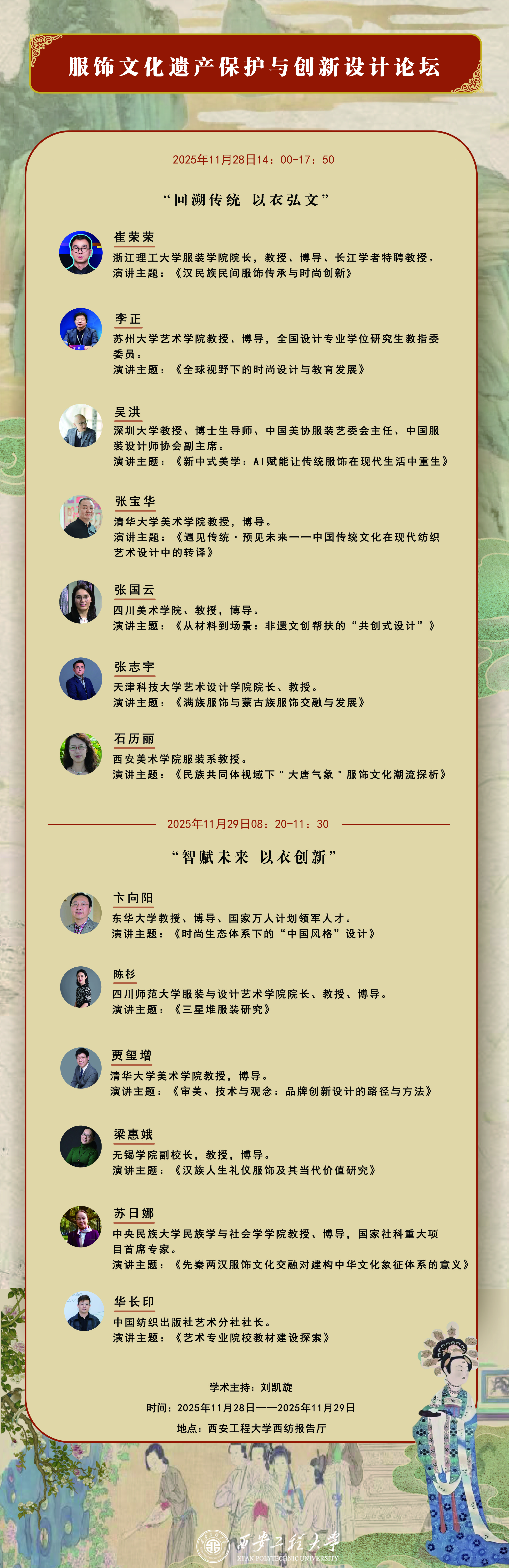 米兰milan将于11月28-29日举办《服饰文化遗产保护与创新设计论坛》,邀请了13位国内服饰文化领域最知名的专家。欢迎校内外师生来我校学习交流(不收任何费用,食宿、差旅自理)。