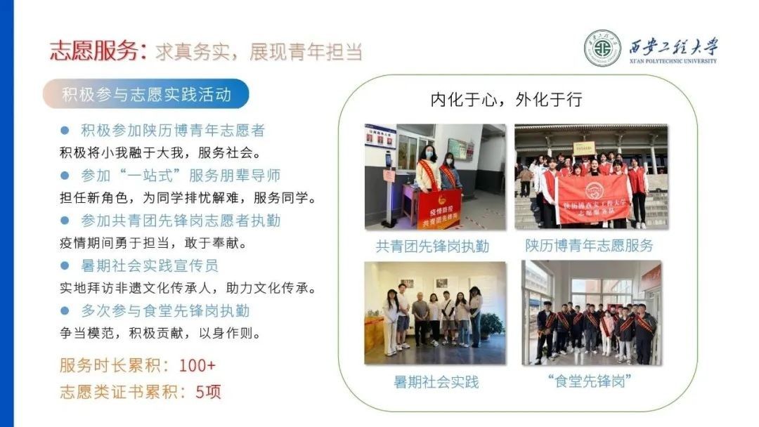 疫情期间姜敏乐积极组织核酸检测工作;完成共青团先锋岗执勤;积极参加陕历博青年志愿者。暑期前往榆林进行暑期实践,保护传承文化遗产,促进人类文明发展。