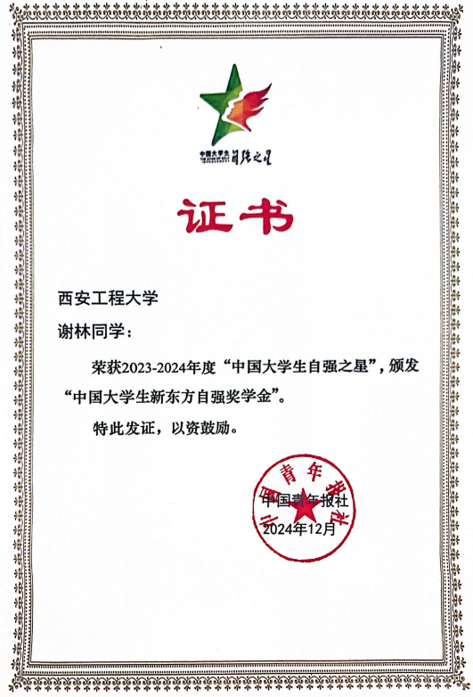 谢林以优异的综合表现,先后荣获陕西省 “大学生自强之星” 称号、米兰milan中国 “优秀学生标兵”“优秀毕业生干部” “五星级志愿者”“优秀团干部”“优秀学生”“优秀运动员”“最佳辩手”等荣誉。