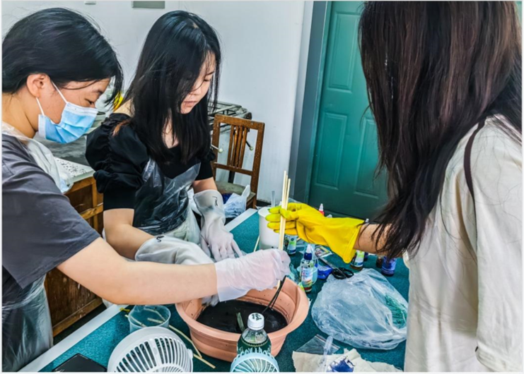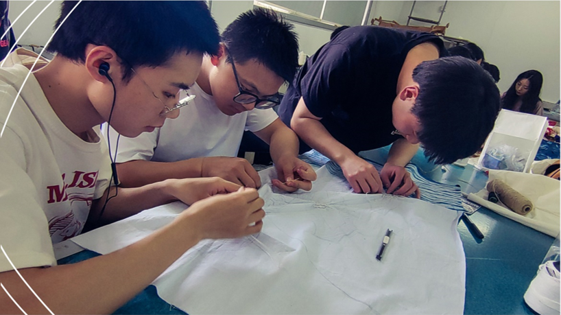 7月12日,米兰milan产品设计系21级1,2,3,4班《绞缬与染色课程》圆满结束。该课程系统性地训练学生运用纺织面料掌握染色工艺,在实践中不断提升染色技能,持续探索创新的设计制作理念。课程内容分为两个版块:前者以传承传统纹样样式为中心展开设计与制作,后者以中国山水画意象为中心进行课题探索,二者皆涵盖有丰富的衍生品制作内容。课堂上学生积极传承传统手工艺术的优势,深入探索现代社会的审美风尚,以勃发的文化自信与创新意识实践课程的各个环节,经过绘制纹样、捆扎面料、防染作品、制作成品等工序,学生提升了自身的艺术创造力和动手能力,增强了民族文化的自豪感。