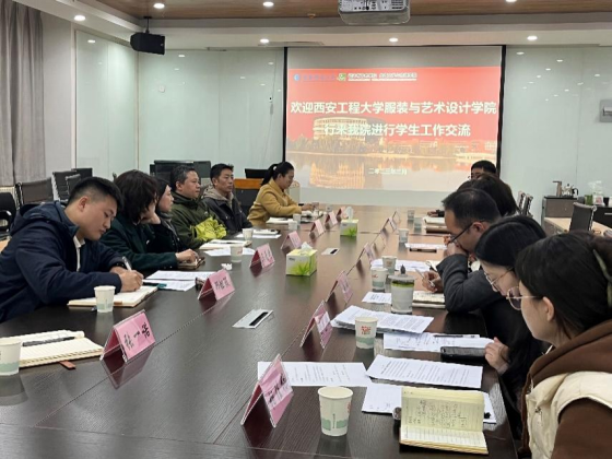 为进一步做好学生管理工作,提升精细化管理水平,探索适应新时代的思想政治工作路径,增进兄弟院校的沟通和联系,3月24日下午,服装学院党委副书记郭欣欣、学工办主任蔡洋及各年级组代表辅导员,赴陕西科技大学设计与艺术学院就学生管理、辅导员队伍建设等工作展开交流。设计与艺术学院党委副书记安玲及辅导员代表一起参加座谈。