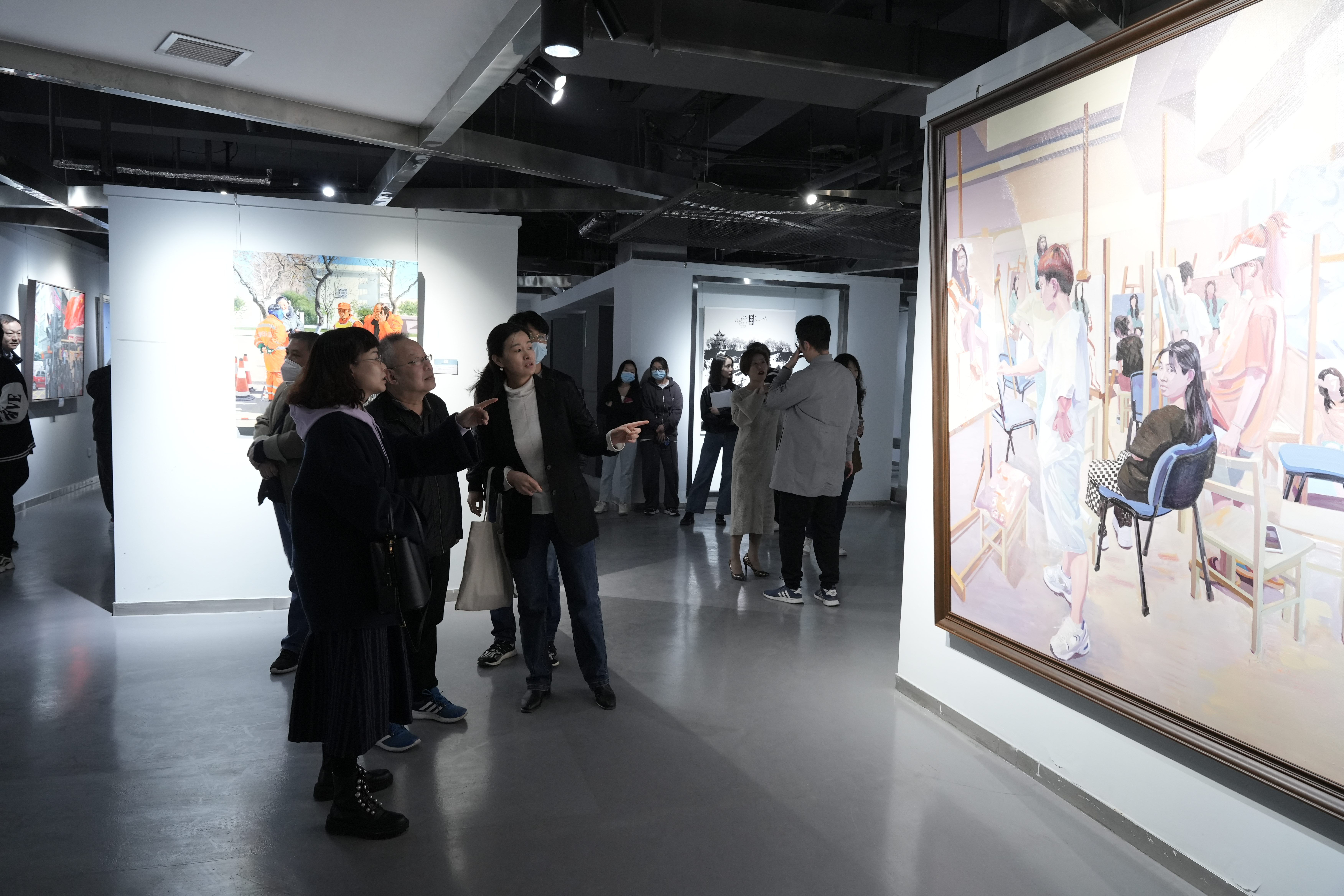 本次展览专门设置了学术研讨会环节,通过案例解析与老师和同学们交流创作流程、技法、设计等方面的经验,为正在进行的毕业创作助力。吕钊院长在研讨会上重点指出美术创作主题的重要性以及对时事的敏感在作品中的作用,鼓励团队成员和同学们保持清晰的创作思维做出有意义的作品。