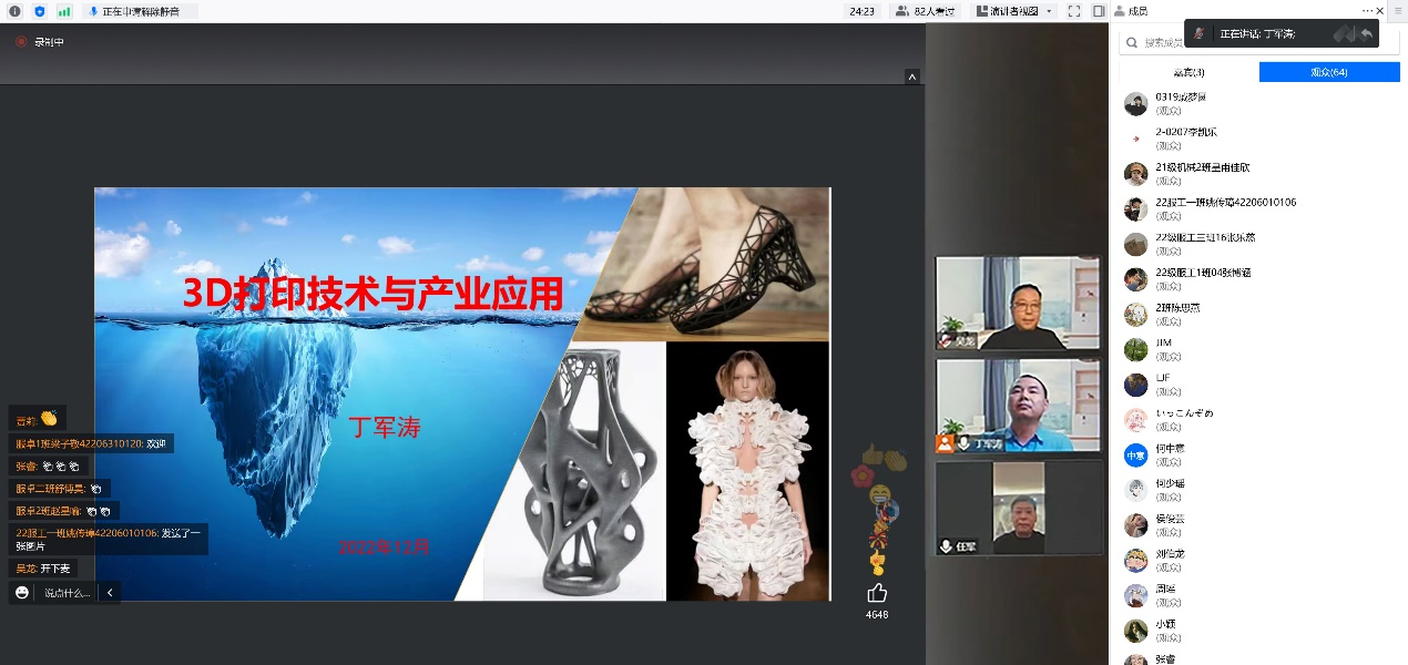 米兰milan服装工程系于12月9日周五晚上19:30在腾讯线上会议召开主题为《3D打印技术与产业应用》的服装工程系专业导师团活动。此活动邀请渭南领智三维科技有限公司副总经理、高级工程师丁军涛,会议由服装工程系副主任吴龙老师主持,服装工程系师生60余人线上参加会议。