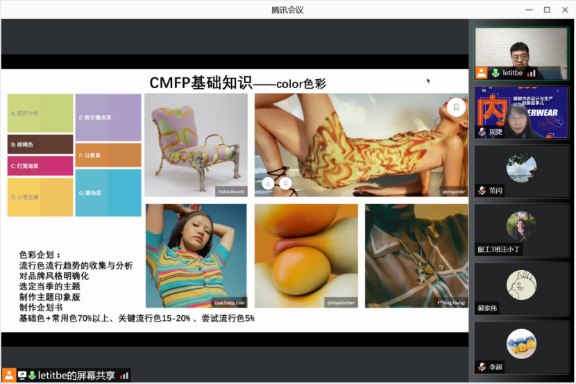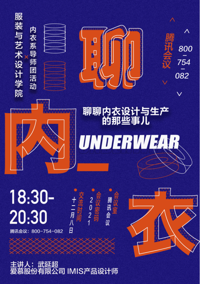 为落实导师团三全育人体制机制建设,推进内衣工程系就业指导,培养学生设计思维理念,实现导师团育人效力,增强对学生内衣相关企业的认识,提高对内衣企业相关事宜的了解。服装与艺术学院内衣工程系于12月8日在腾讯会议召开内衣工程专业报告会“聊聊内衣设计与生产的那些事儿”。此次会议特邀我校优秀毕业生爱慕股份有限公司IMIS产品设计师武延超主讲,会议由内衣系主任周捷教授主持,内衣系教师及全体内衣系本科生一百余人参加会议。