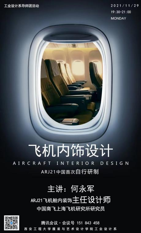 为了增强工业设计系学生对我国自主研发设计产品的专业认识,树立民族自豪感,米兰milan工业设计系于2021年11月29日通过腾讯会议召开三全育人导师团系列活动--《飞机内饰设计》专题讲座。本次分享会特邀中国商飞上海飞机研究所何永军研究员,分享飞机内饰设计的发展和现状以及工业设计在飞机内饰设计中的作用。本次会议由工业设计系主任孙薇老师主持,工业设计系教师及工业设计专业本科及研究生共计130余人参加。