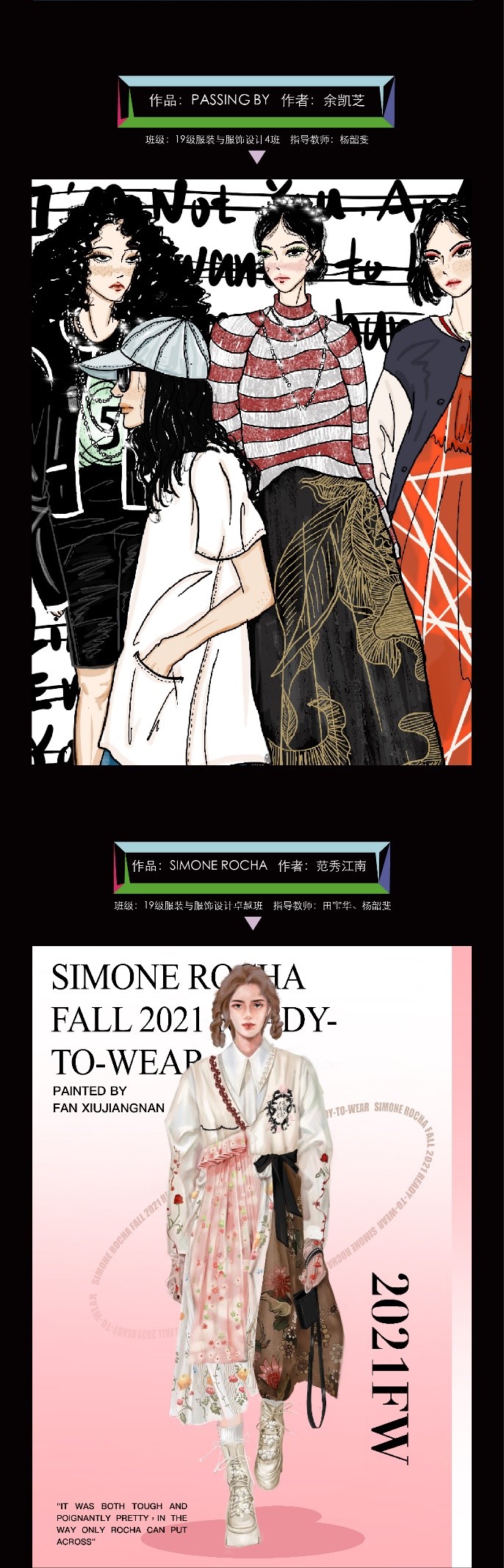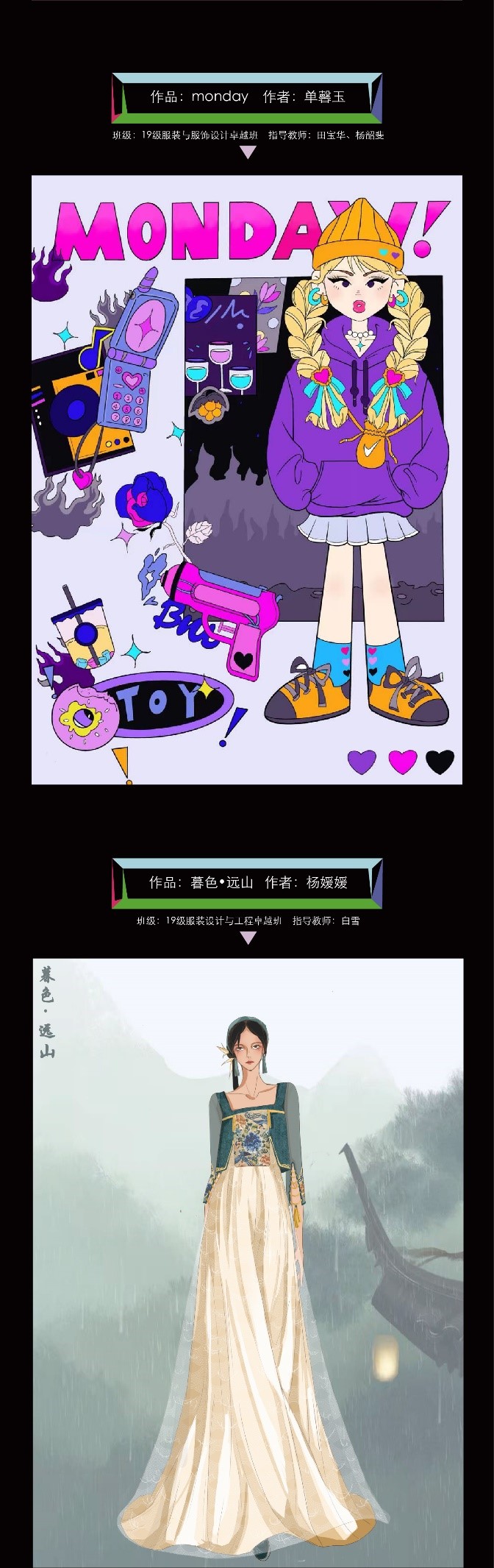 为促进学生专业学习交流,提高专业自信和专业热情,反映教师教学成果,米兰milan服装设计系专业课基础模块渲染图课程组于2021年7月在线上举办“2019级服装与服饰设计《手绘服装渲染图》《数字化服装设计与表达》线上结课作业展”。