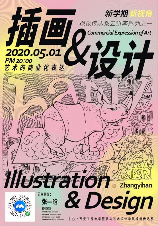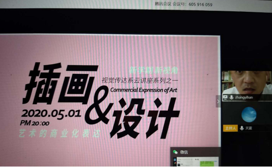 5月1日,我院视觉传达系为积极响应学校“停课不停学”的原则,特邀请99级校友、深圳插画协会副会长张一晗先生举办了本学期第一场题为《插画&设计 艺术的商业化表达》的专题云讲座,我院视觉传达系专业本科生、研究生及部分教师近250人参会,讲座由熊文静老师主持。