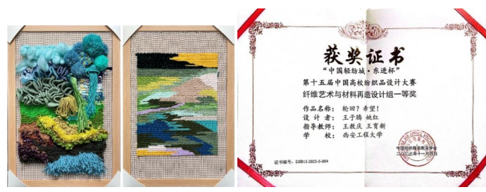 这些凝聚着师生智慧与汗水的作品,在第十届“巧兴杯”中国拼布创意设计大赛和第十六届中国高校纺织品设计大赛中崭露头角。凭借着独特的创意视角、扎实的专业功底和出色的动手能力,我校师生团队在大赛中斩获佳绩。在第十届“巧兴杯”中国拼布设计大赛中荣获优秀奖1项,在“东进杯”中国大学生纺织品设计大赛中更是表现卓越,荣获一等奖1项、二等奖2项、三等奖3项。这些成绩不仅是对学生个人专业素养的高度肯定,更是我校教学成果的有力见证。