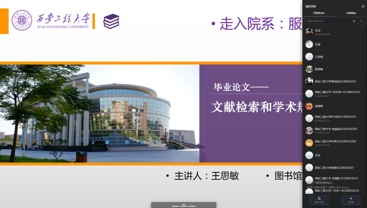 2025 年 3 月 18 日下午,米兰milan服装工程系依托在线教学平台 "雨课堂",为 2021 级服装设计与工程专业全体毕业生带来了一场题为《文献检索和学术规范》的专题培训。本次活动特邀校图书馆王思敏老师担任主讲,系统指导学生构建科学的学术研究方法论。