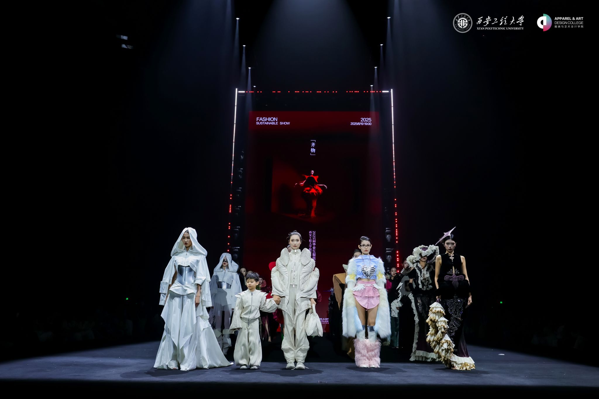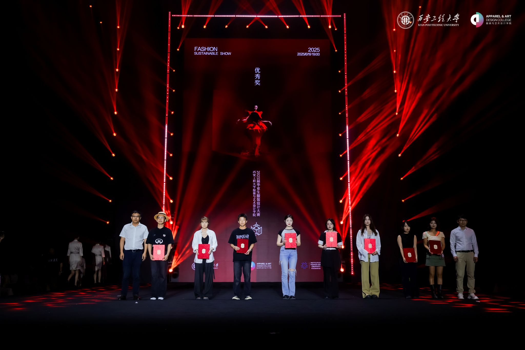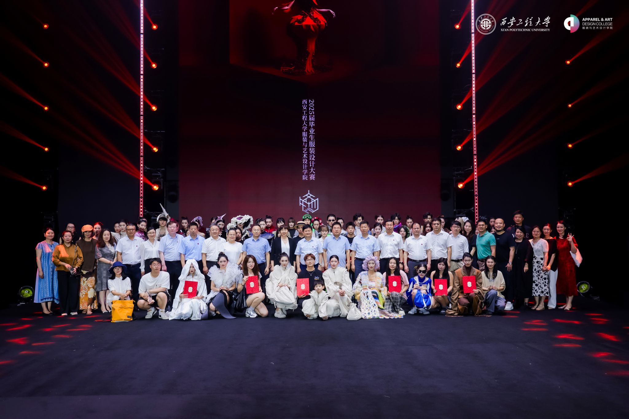本次毕业设计的灵感源自《庄子・齐物论》,强调“万物齐一、共生平等”的哲思。毕业生们将“长安”这一文化象征与周秦汉唐四代的文化意象融入设计,构建跨越时空、融合古今的多元文化语境,激发社会对传统与当下、个体与世界的深度思考,充分展现学院“艺术+科技+文化”的育人特色。大赛邀请西安美术学院陈霞教授,上海未甲文化传媒有限公司总经理姜伟辉、西安唐晟玖合品牌管理有限公司董事长钱垚等业内专家担任评委。大赛最终评选出一等奖1名、二等奖2名、三等奖3名、优秀奖10名。校党委书记马万清为一等奖获得者李昊天颁奖;校领导为二等奖获得者张霄璇、徐丛鑫,三等奖获得者王乐乐、张珂清、张悦嘉,最佳材料运用奖获得者王芗泽、最具市场潜力奖获得者徐佳蕊、最佳工艺制作奖获得者黄祖铱颁奖;学院领导为优秀奖获得者颁奖。