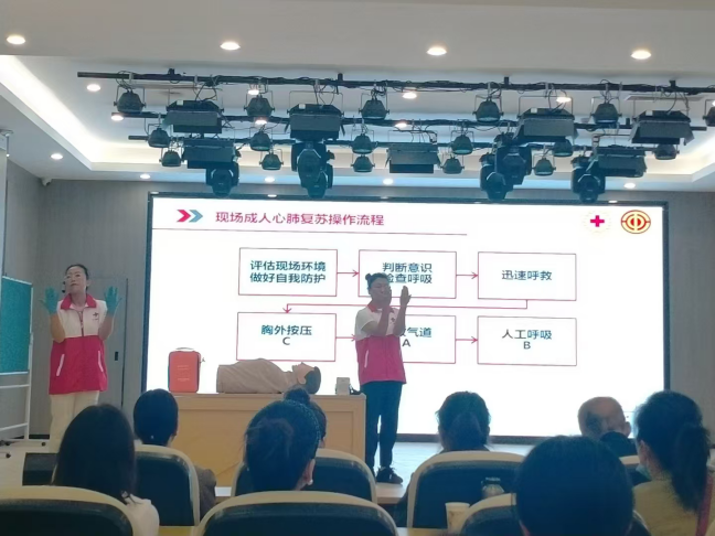 培训中,志愿者们认真学习了气道开放、心肺复苏等急救技能,通过讲师的现场示范和手把手指导,掌握了环境评估、意识判断、胸外按压、人工通气等关键操作要领。讲师特别强调"黄金4分钟"在急救中的重要性,并结合临床案例讲解心搏骤停的急救流程,使志愿者们对应急救护有了更深刻的认识。